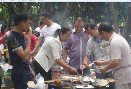 在这个轻松愉快的节日里,大阳人换上了节日的盛装,在这里尽情地欢乐。远离每日萦绕在我们耳畔隆隆的机器声,远离紧张而又忙碌的工作,我们享受这难得的轻松。红红的火炉映照着大阳人纯朴的脸庞,我们慢慢地品尝钢丝架上烧烤的食物。