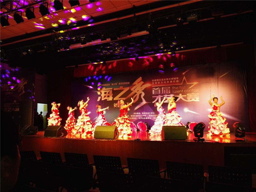 6月13日至14日晚上,福海街道隆重办举行2017年“海之秀”首届才艺大赛,共有四十多个企业、学校和艺术培训机构参加比赛,公司工会选送两个舞蹈参加了演出。在舞台上,演员们发挥超常水平,尽情表演,博得了在场观众热烈的掌声。现代舞《DADDY》评分较高,于6月20日晚上参加决赛,获得优秀奖。